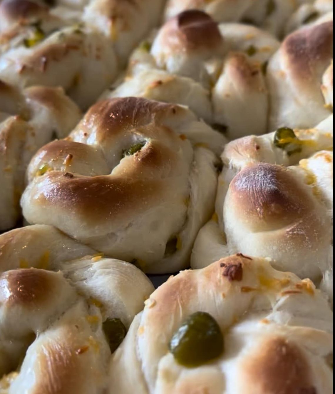 Turn up the heat and melt-in-your-mouth comfort with our Jalapeño Cheddar Take & Bake Rolls. Each batch is packed with real cheddar and just the right kick of fresh jalapeño—balanced for flavor, not fire.
